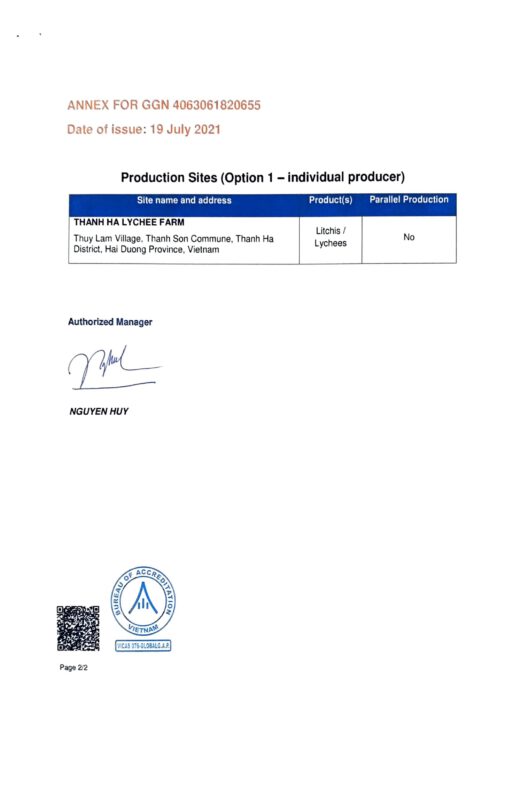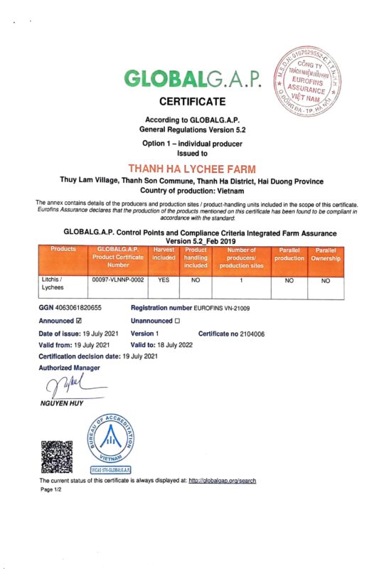 Thanh Ha lychee has been certified Global Gap standard, is available to supply for domestic and international market.